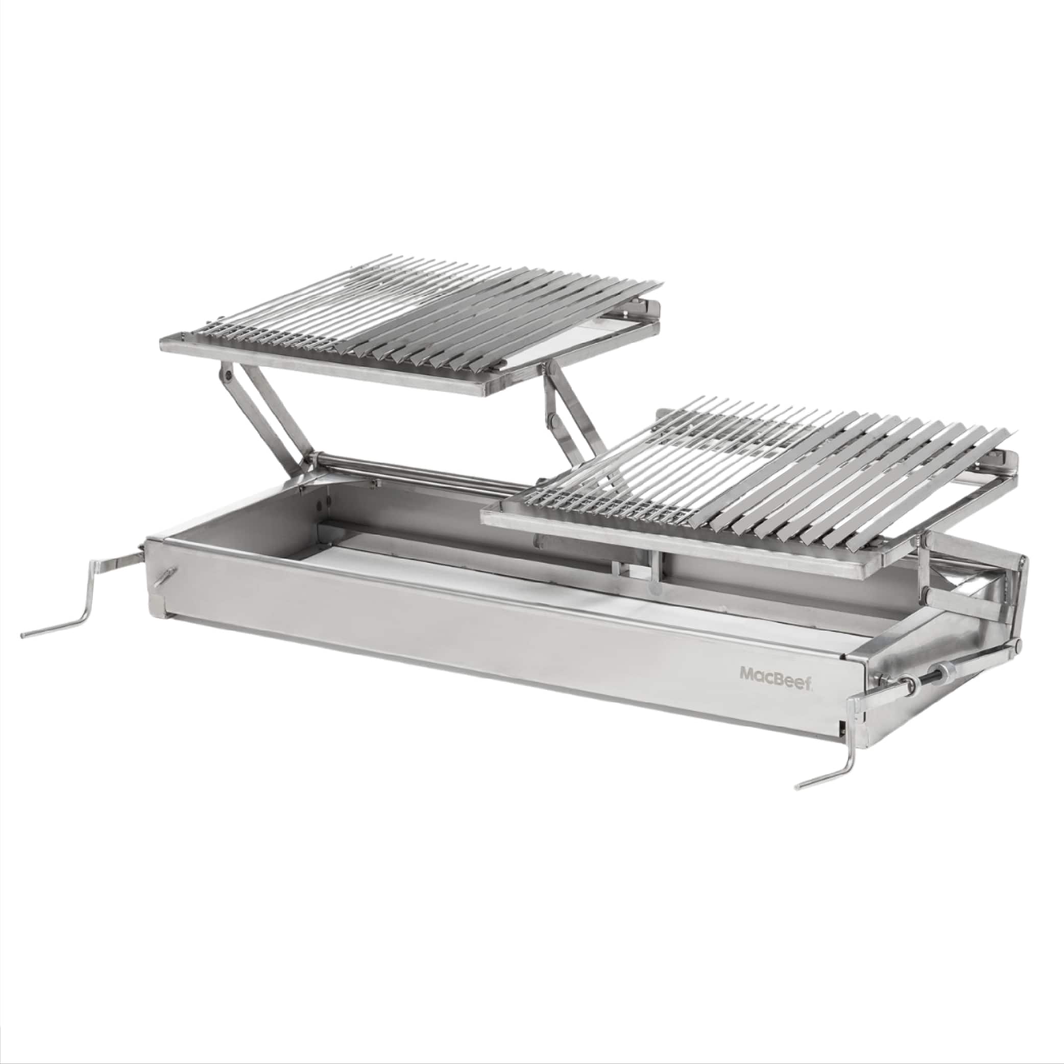 Para el parrillero que busca precisión en cada detalle, este combo es la opción ideal. La Parrilla Quincho Inoxidable Doble Alzador, con su sistema de ajuste de altura, garantiza un control total sobre la cocción. Se complementa con el Cuchillo Profesional 8″ MacBeef, diseñado para realizar cortes precisos y disfrutar cada pieza de carne con la mejor calidad.