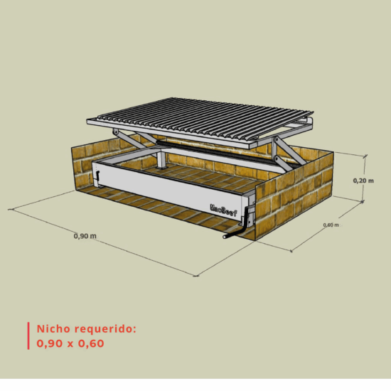 La profundidad de 60 cm recomendada, es para lograr la altura máxima de la parrilla cuando esta se alce. Esta altura máxima alcanza los 44 cm.