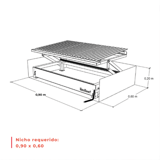 Si la base donde se instalará la parrilla tiene una profundidad o fondo menor a 60 cm, sólo se alcanzará una altura menor cuando subas la parrilla con la manivela.