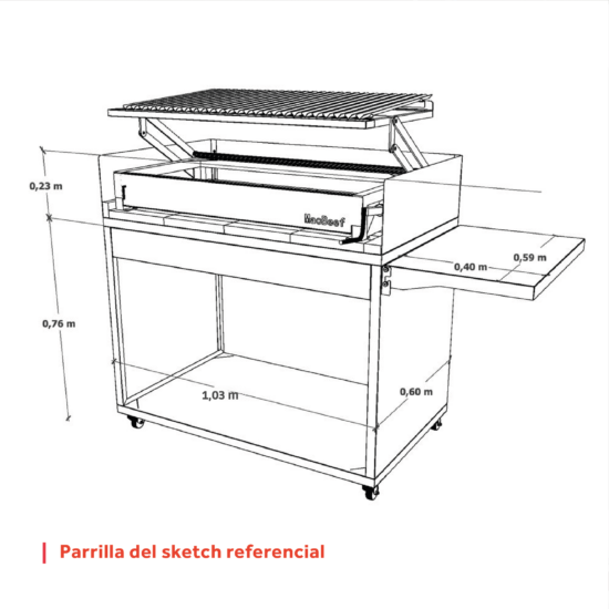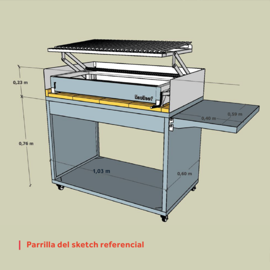 - Parrilla: 98 cm x 53 cm x 19 cm